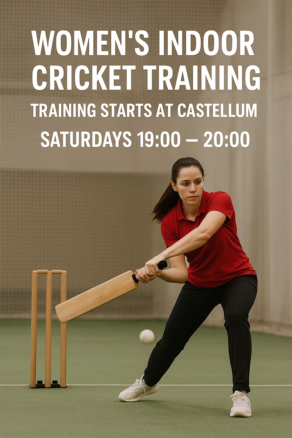 Our Women’s Indoor Cricket Training is kicking off at Castellum every Saturday from 19:00 to 20:00 — and we can’t wait to see you there!
